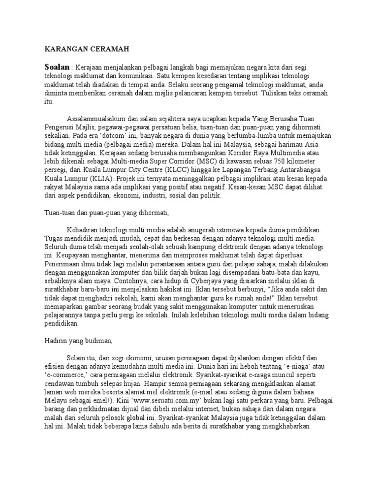Kumpulan Contoh Paling Lengkap Lihat Contoh Karangan Ceramah Stpm Terlengkap